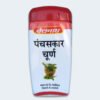 Panchsakar Churna is a simple yet priceless combination of herbs that reduces Vata dosha. Contains potent Ayurvedic herbs that have been used to manage digestion since ancient times. Haritaki, fennel and rock salt stimulate the digestive fire, while cassia aids in the clearing of clogged channels. Baidyanath has explicitly formulated this herbal powder to alleviate constipation, improve digestion and regularise bowel movements. It is an excellent remedy for constipation and its associated problems or disorders such as indigestion, colic, and diarrhoea with abdominal pain. The product contains natural laxative properties and aids in overall digestion with positive results noted in 14-20 days of regular use.